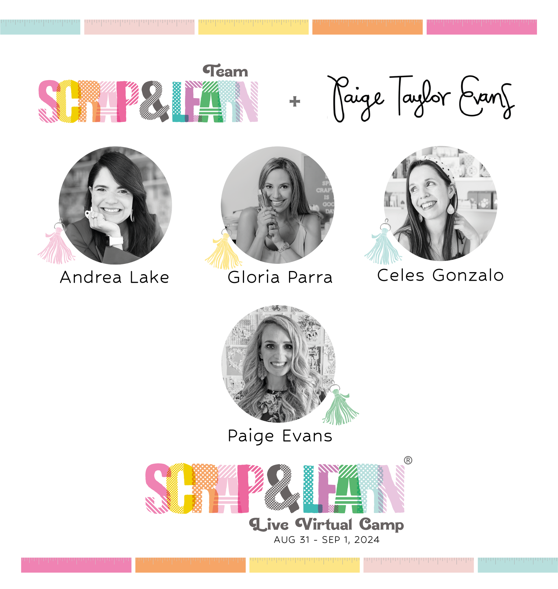 We are thrilled to announce our Scrap & Learn: 2024 Live Virtual Retreat! Join Scrap & Learn team members Andrea Lake, Celes Gonzalo, and Gloria Parra with guest instructor Paige Evans for a fun weekend full of creativity and exciting projects on Saturday, August 31st and Sunday, September 1st.
